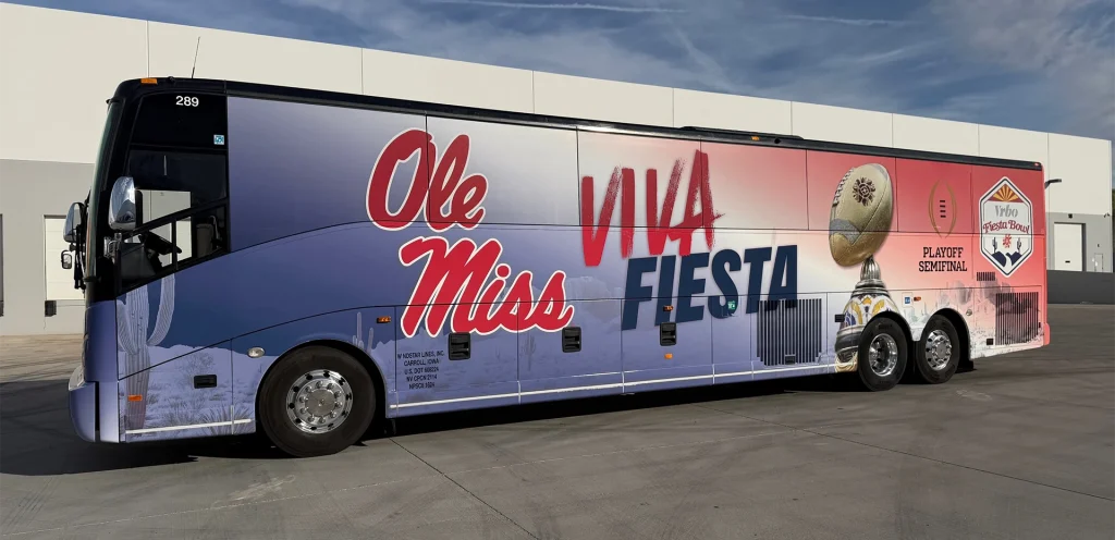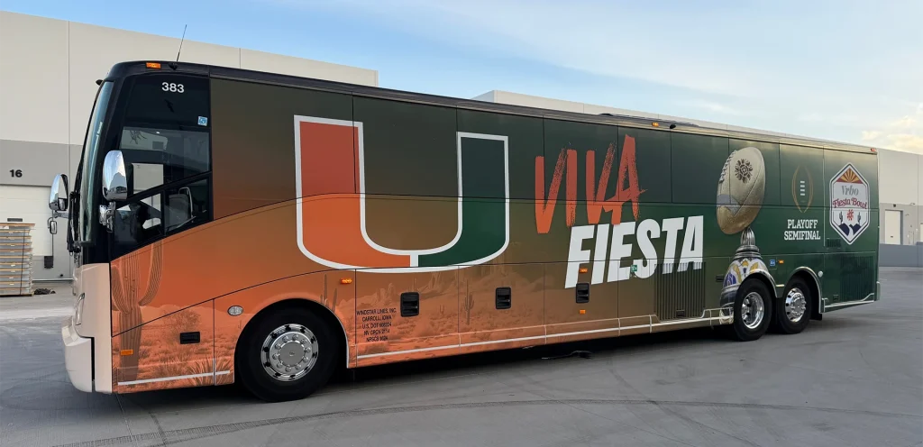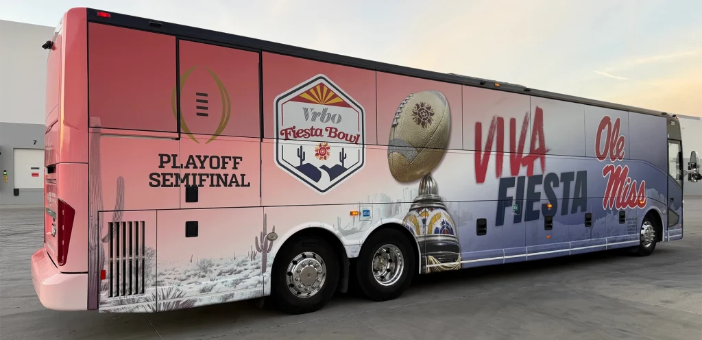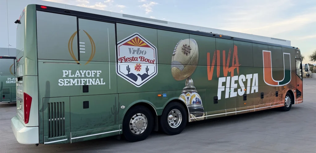 As part of the 2026 Fiesta bowl branding, Image Craft wrapped team buses in bold, high-impact graphics that extended the experience into the city itself. These mobile billboards turned everyday streets into team brand moments, reinforcing the presence of the games throughout Phoenix.